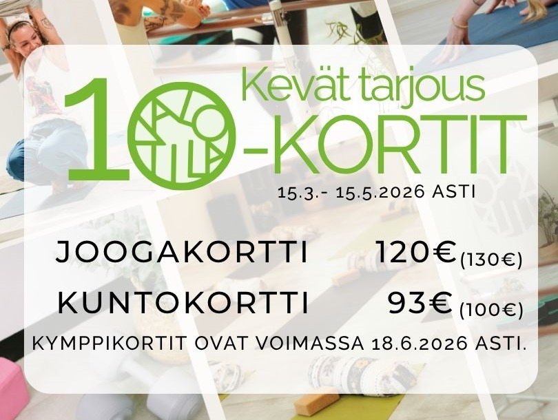 Tunneille voit osallistua kertamaksulla, kymppikortilla tai kausikortilla oman kiinnostuksesi ja aikataulusi mukaan.